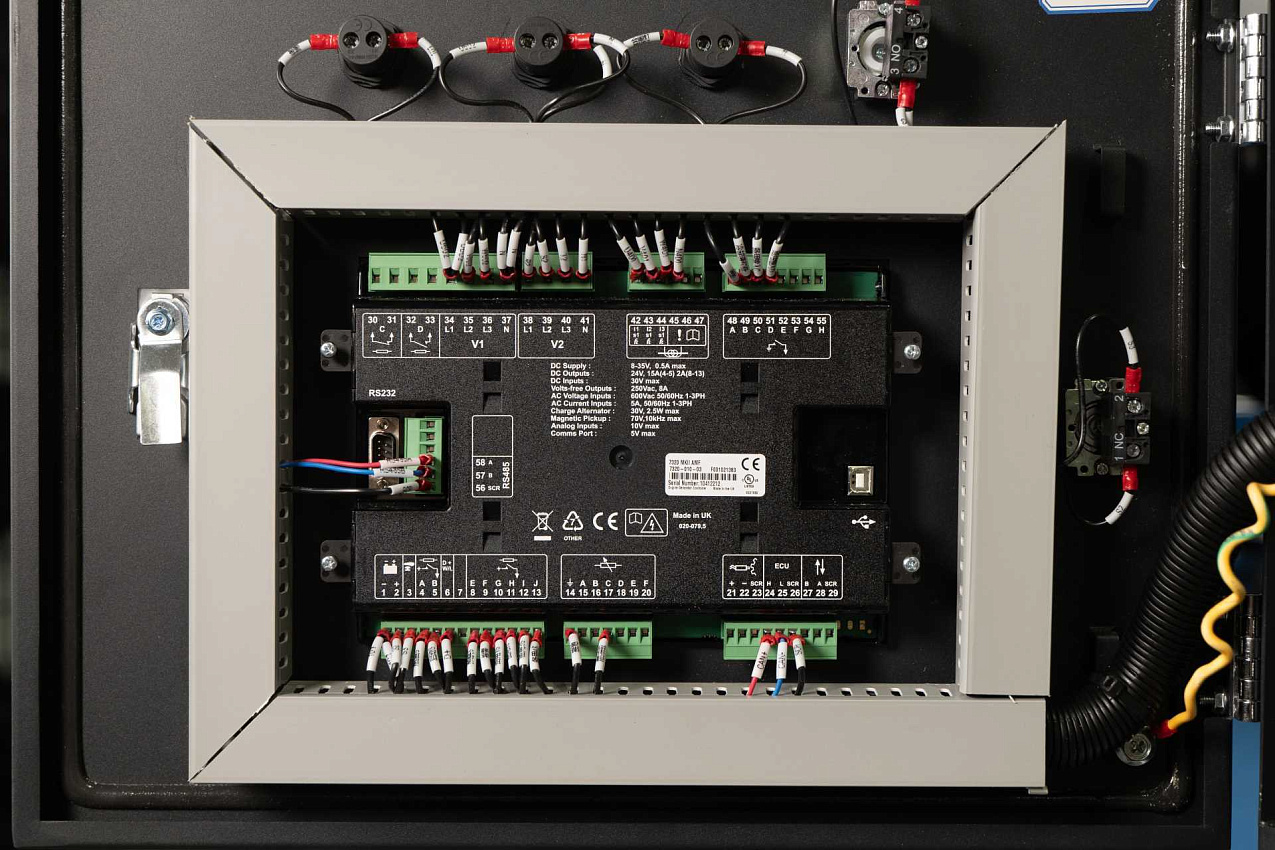 В комплектацию входит - ComAp IL4-AMF25/CHINT NXMS-1250H/3P 1250A 70kA/WH: SmartGen HWP40N (230 В) с циркуляционным насосом/PBC: SmartGen BAC2408/Датчик уровня охлаждающей жидкости в радиаторе/MN: Ручной насос для откачки масла/Антиконденсационный нагреватель обмоток/Датчик давления масла/Датчик температуры охлаждающей жидкости/Разъединитель аккумуляторной батареи/Электрический подкачивающий насос Yuchai с фильтром-сепаратором YCQ-6935-5N /АКБ: Varta 120 A *2/Глушитель